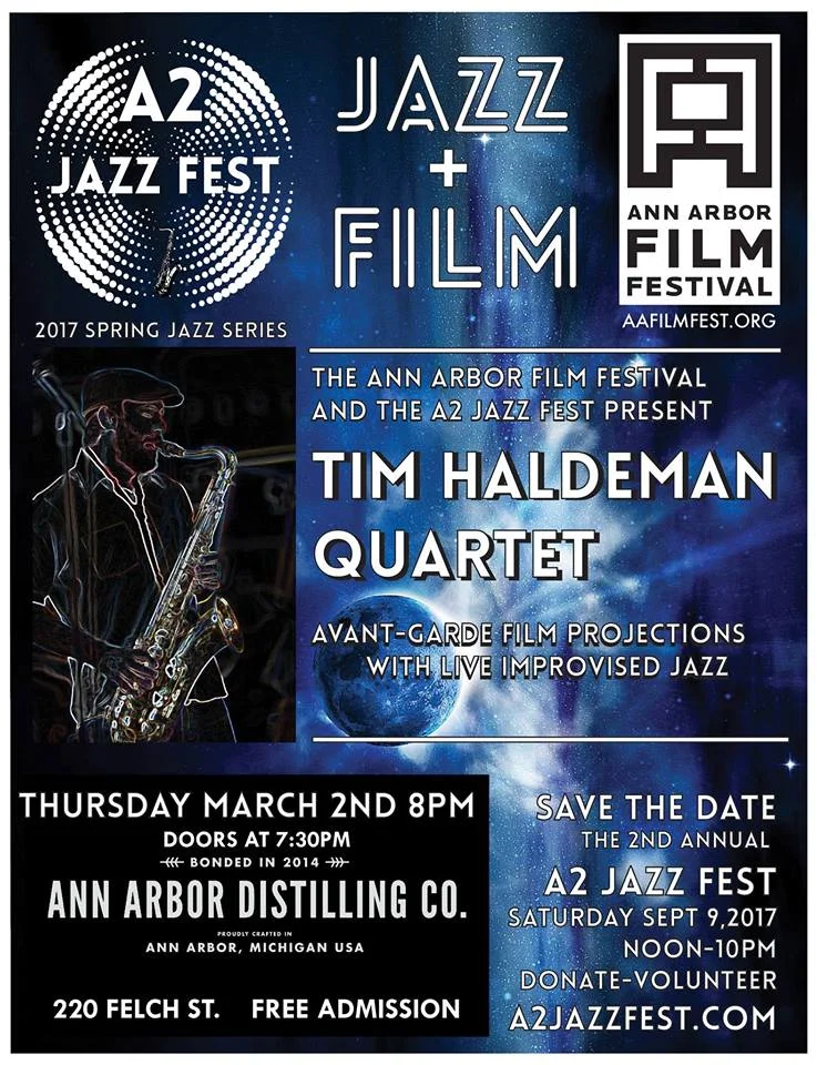 an evening of JAZZ+FILM with the Tim Haldeman Quartet. Avant-Garde film projections and live improvised jazz.